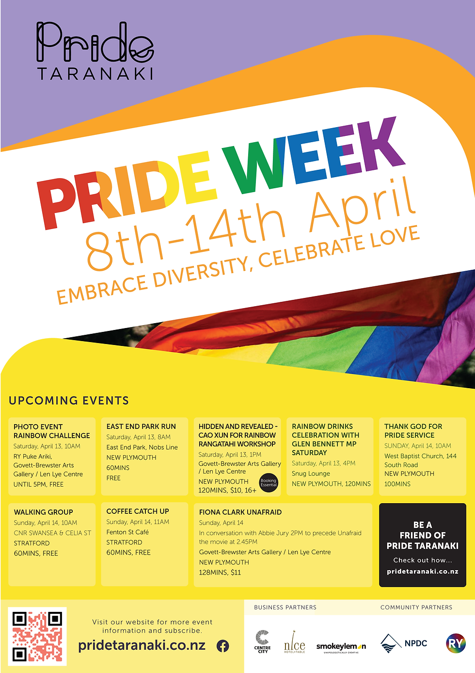 Pride week 2024 was filled with a wide variety of events throughout Taranaki. Pride Taranaki ran from 8–14 April for a vibrant week of connection, celebration and community. With events across New Plymouth, Ōpunake and the wider region — including quiz night, workshops, theatre, community breakfast, guest speakers, bowling, a guided gallery tour, social gatherings and a youth clothes swap — there was something for everyone.